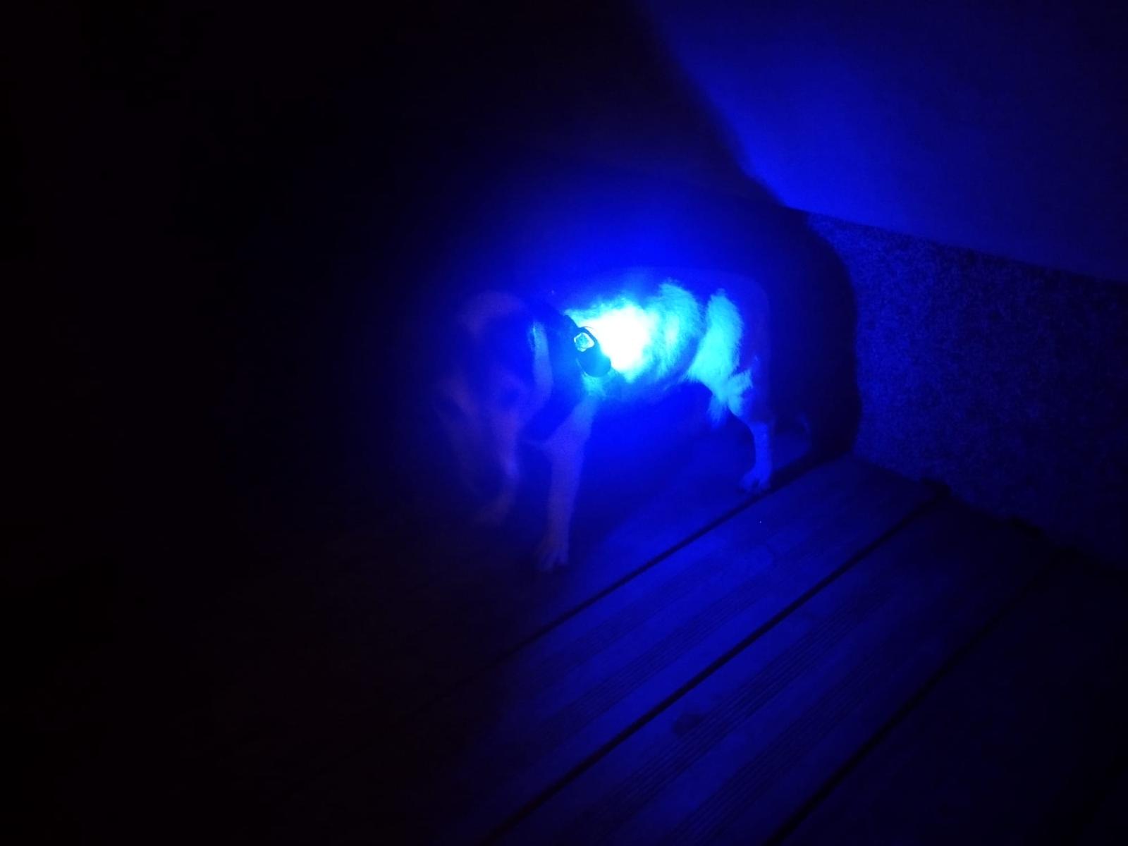 Nein. Das Licht ist bewusst ruhig und gleichmäßig gehalten, um deinen Hund nicht zu blenden oder zu irritieren.