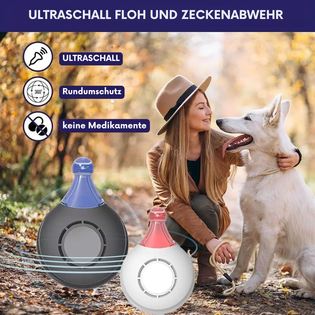 Mit modernster Ultraschalltechnologie werden Flöhe, Zecken und Mücken effektiv abgewehrt – 100 % chemiefrei und vollkommen sicher für deinen Hund.